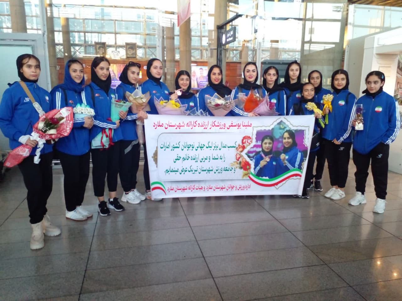 آئین استقبال از دختران کاراته کا ملی پوش و مدال آور ملاردی خانم ملینا یوسفی پس از شرکت در رقابتهای لیگ کاراته وان فجیر کشور امارات و کسب مدال برنز بهمراه مربیان خود خانم ها فاطمه حقی و فرشته سلطانی توسط حسین محمدپور سرپرست اداره ورزش و جوانان و زرگر رئیس هیات کاراته در فرودگاه بین المللی امام خمینی(ره) برگزار شد.