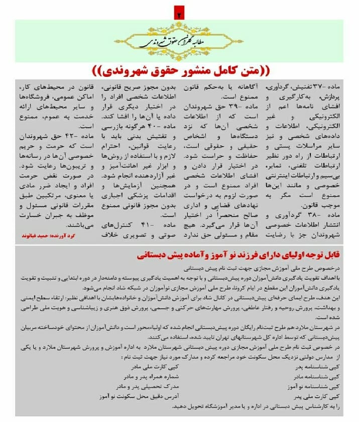 نشر ششمین هفته نامه مطالبه گران حقوق شهروندی شهرستان ملارد [ad_2]